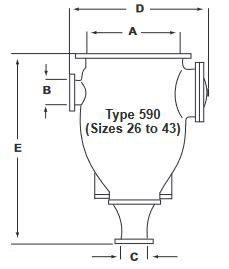 The Type 591 design is used for the four smallest sizes. It has the water inlet at the top and the vapor inlet at the side. This unit consists of a body (a closed cylindrical chamber), and water nozzle housing at the top water inlet; and jet type water nozzles.